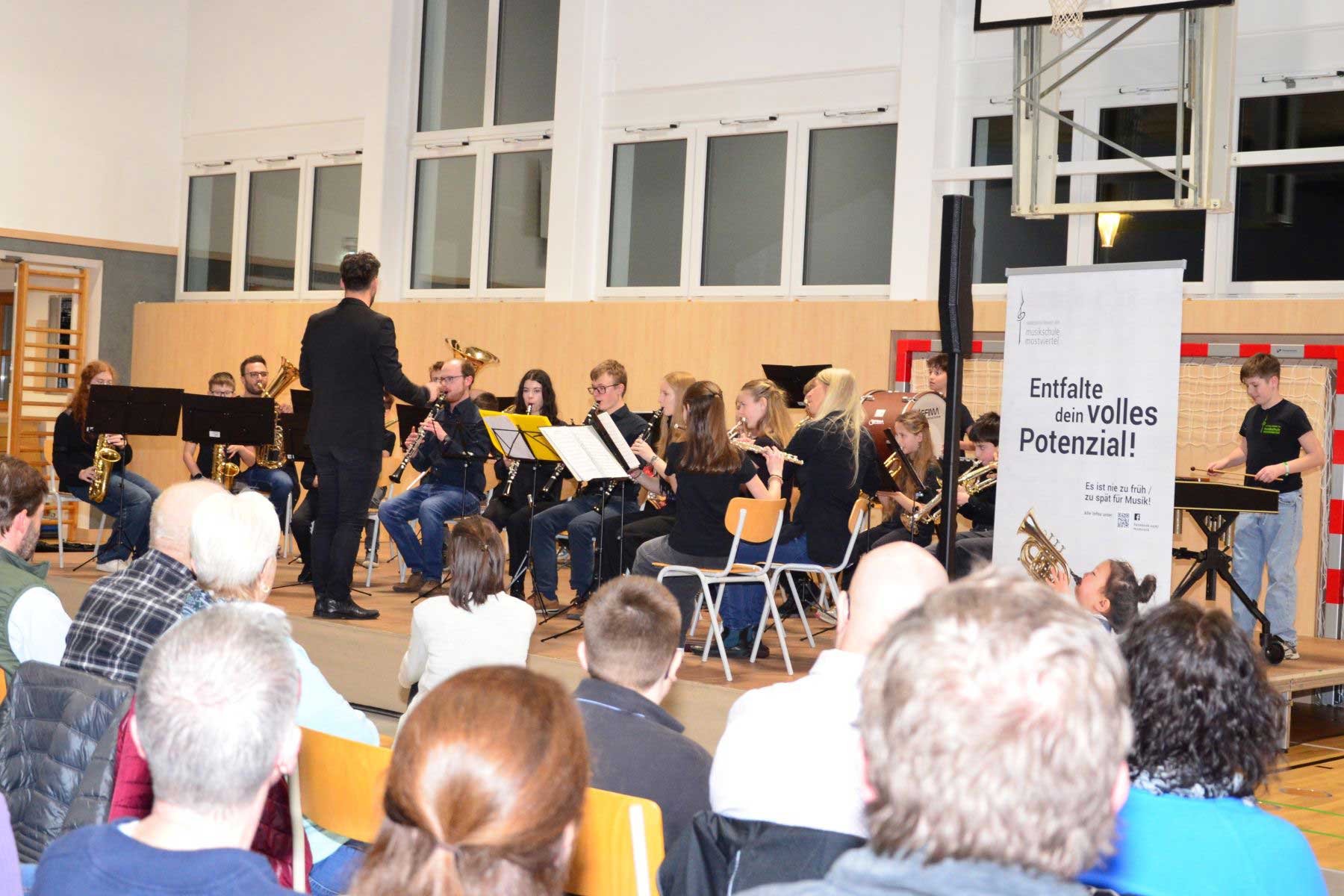 Ein Abend, wie er im Bilderbuch steht: „Bläser & Beats“ lautete diesmal das Motto des Konzertabends in der Donauhalle Wallsee am Donnerstag, dem 12. März 2026. Ein Holz- und Blechbläsertreffen der besonderen Art, eine bunte Mischung an Ensembles – von der Klassik bis zur böhmischen Musi, vom Waldhornquartett bis zur Most4Band. Für die Beats sorgten die Schlagzeuger, die den verschiedensten Formationen den nötigen Groove verliehen.